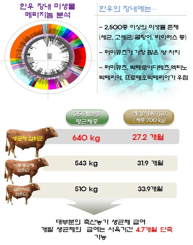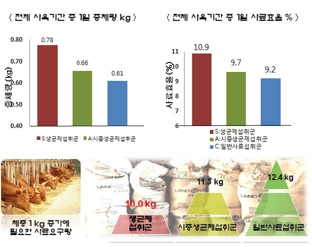 - 축산농가들의 한우사료에 대한 경제적 어려움을 해결하기 위해 개발된 KS50 미생물 생균제의 효능인 한우